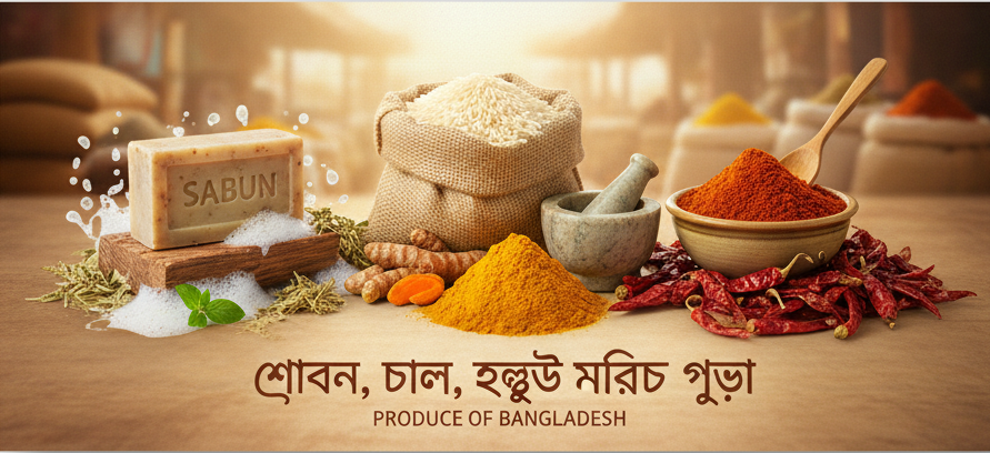 আমরা আমাদের পণ্যগুলোর (বল সাবান, ডিটারজেন্ট, মরিচ গুঁড়া, হলুদ গুঁড়া, চা ইত্যাদি) বিবরণ এবং ছবি যথাসম্ভব নির্ভুলভাবে উপস্থাপন করার চেষ্টা করি। তবে ডিভাইসের স্ক্রিন রেজোলিউশনের কারণে আসল পণ্যের রঙ বা প্যাকেজিং সামান্য ভিন্ন হতে পারে। ২.২. আমাদের সকল পণ্য মান নিয়ন্ত্রণ (Quality Control) প্রক্রিয়ার মাধ্যমে বাজারজাত করা হয়।